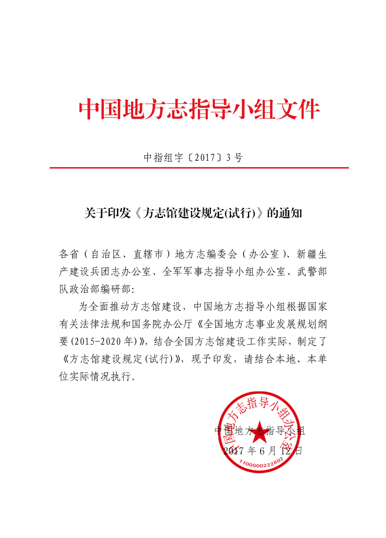中国地方志指导小组关于印发《方志馆建设规定(试行)的通知》