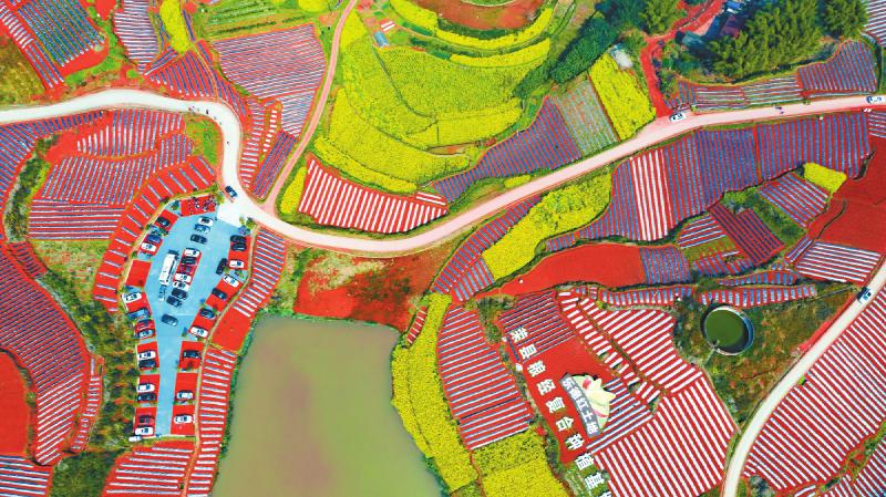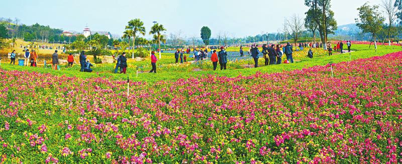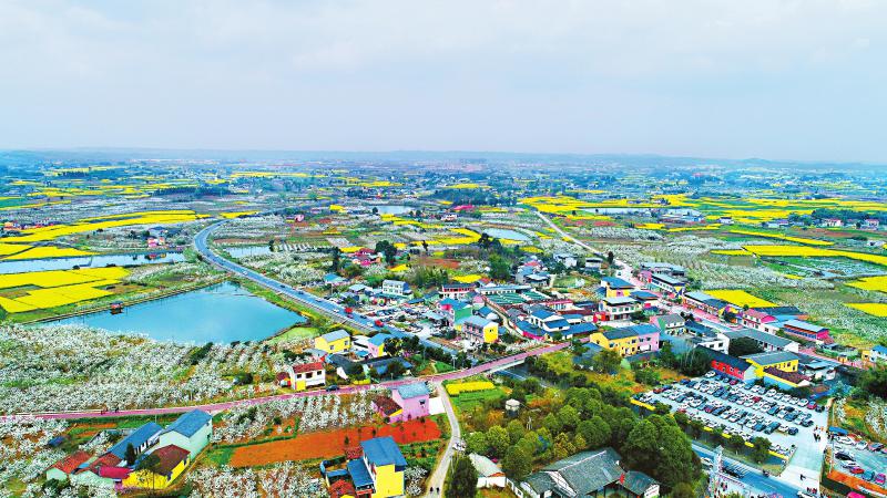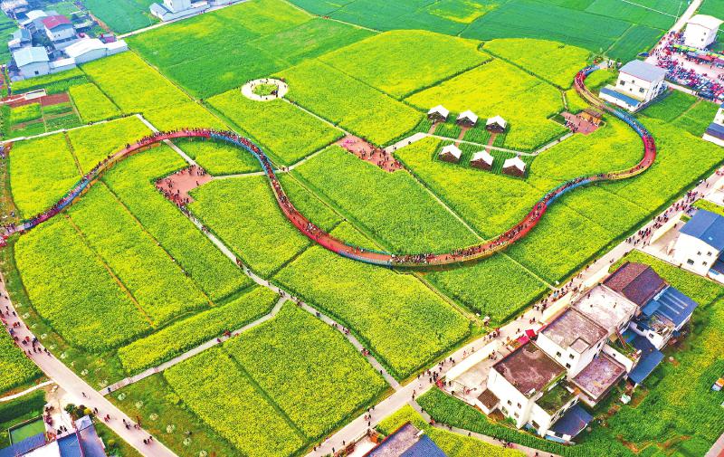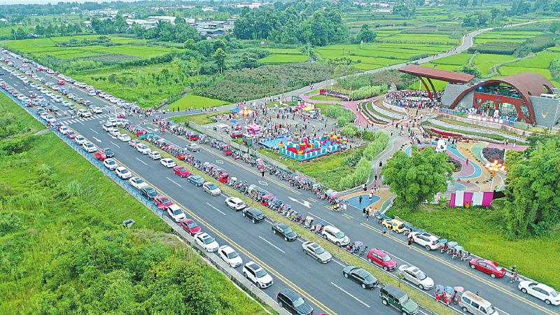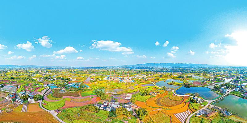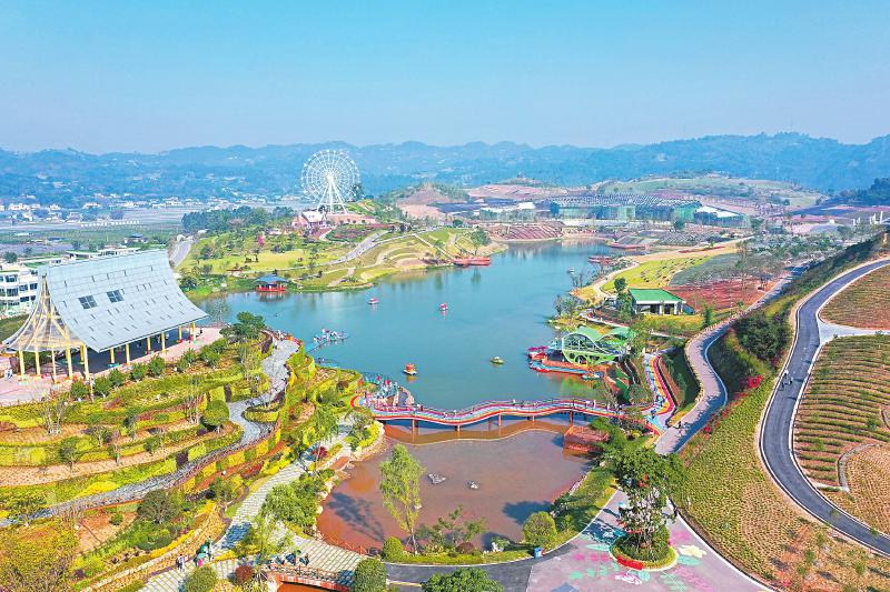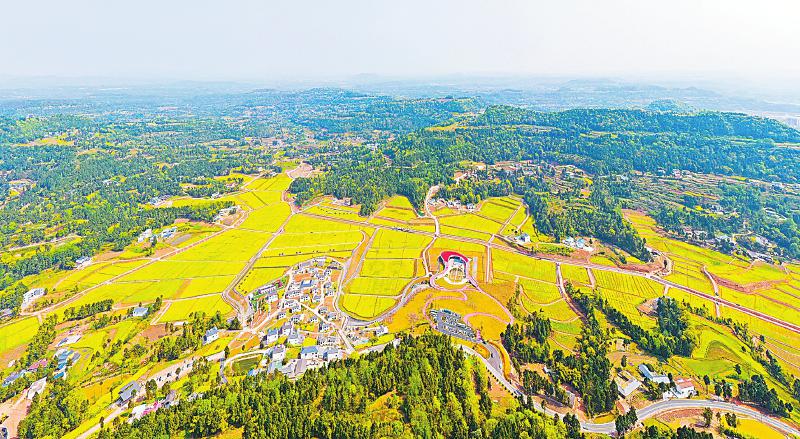 “田园恩阳·海山情园”,巴中市恩阳区柳林镇海山村优质粮油产业园农旅融合吸引游客。