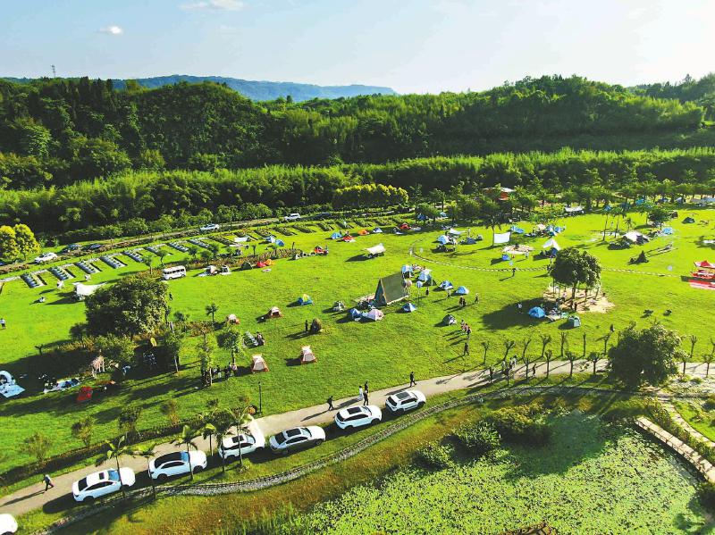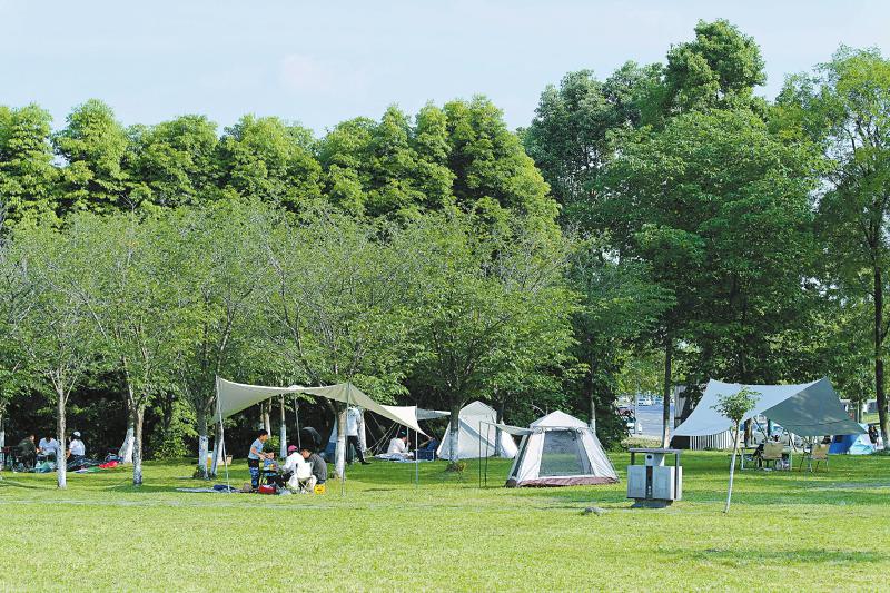 近日,市民在成都天府公园草坪上露营。 四川日报全媒体记者 何海洋 摄