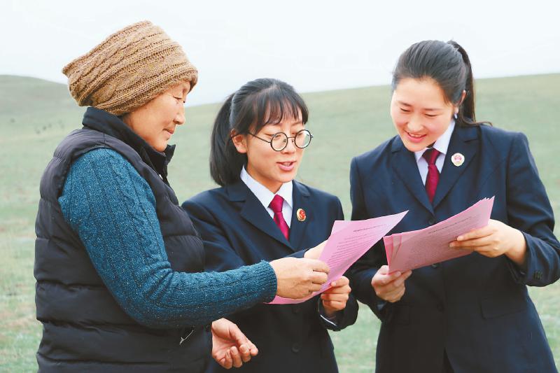阿坝州检察机关“鹤翔兰萨”公益诉讼团队向若尔盖县牧民宣讲生态保护知识和公益诉讼知识。