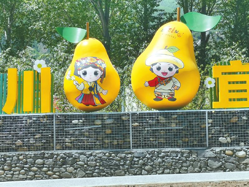 金川县打造以雪梨为主的原创卡通IP形象“大川”和“小梨”,形成各种造型的雪梨微景观。 王鑫 摄