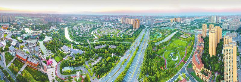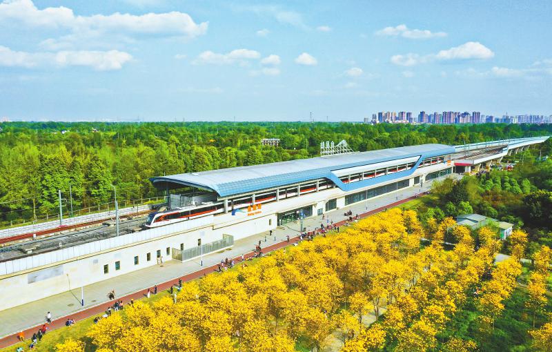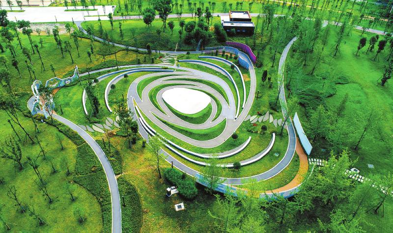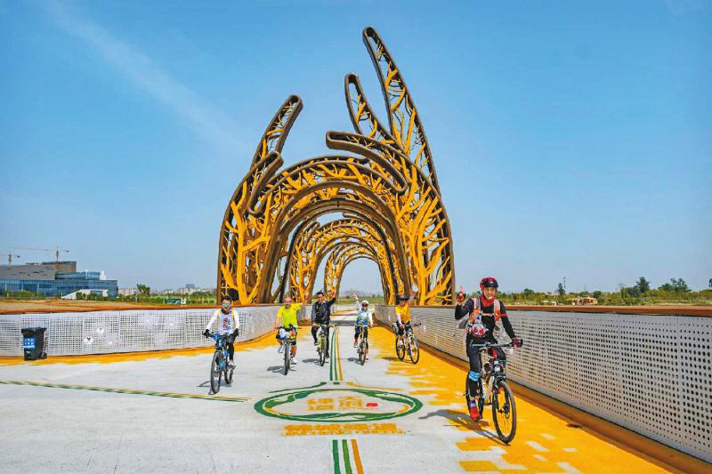 2022年4月12日,一群骑游爱好者畅行在成都环城生态公园的绿道上。2022年初,成都环城生态公园实现全线闭合,这条100公里长的一级绿道串联起133平方公里生态公园、20平方公里生态水系和24平方公里的城市森林。