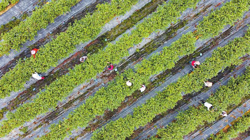 5月26日,眉山市彭山区岷江现代农业园区的森田家庭农场200亩蓝莓迎来丰收,50余名工人正忙着蓝莓采摘、搬运、装箱。近年来,彭山区大力发展特色农业产业来提高农民收入,助力乡村振兴。 翁光建 摄(视觉四川)