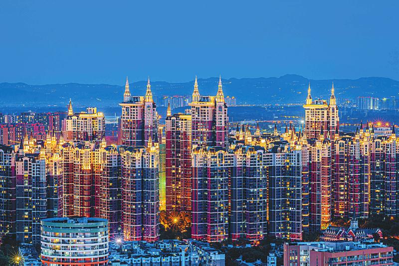 据2022年5月发布的《中国城市人才吸引力排名:2022》显示,成都应届生流入占比第二,对高学历人才和年轻人才吸引力大。图为夜幕中的成都一个居民小区。