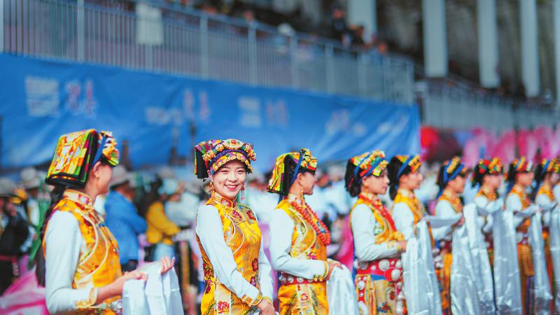 嘉绒姑娘身着盛装参加嘉绒锅庄文化旅游节。 马德晖 摄