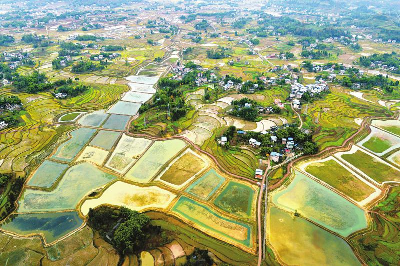 泸州市古蔺县德耀镇万亩“稻鱼共生”示范园区美景。 (古蔺县委宣传部供图)