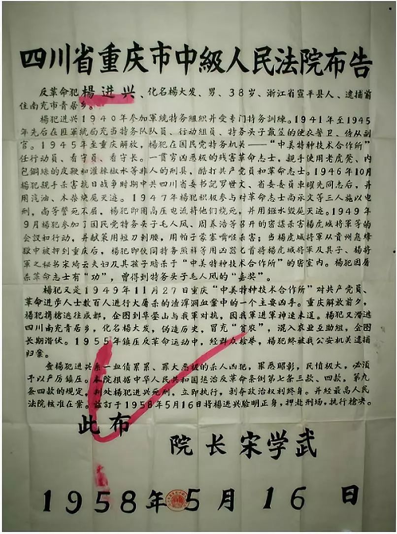 就是这样一条看似平常的信息,牵出了震惊全国的大案。这个来路不明、自称名叫杨大发的选民,就是重庆白公馆监狱残害我共产党人的看守长、刽子手,杀害了共产党员和进步人士300多人,就是《红岩》小说中“猫头鹰”的原型——杨进兴。