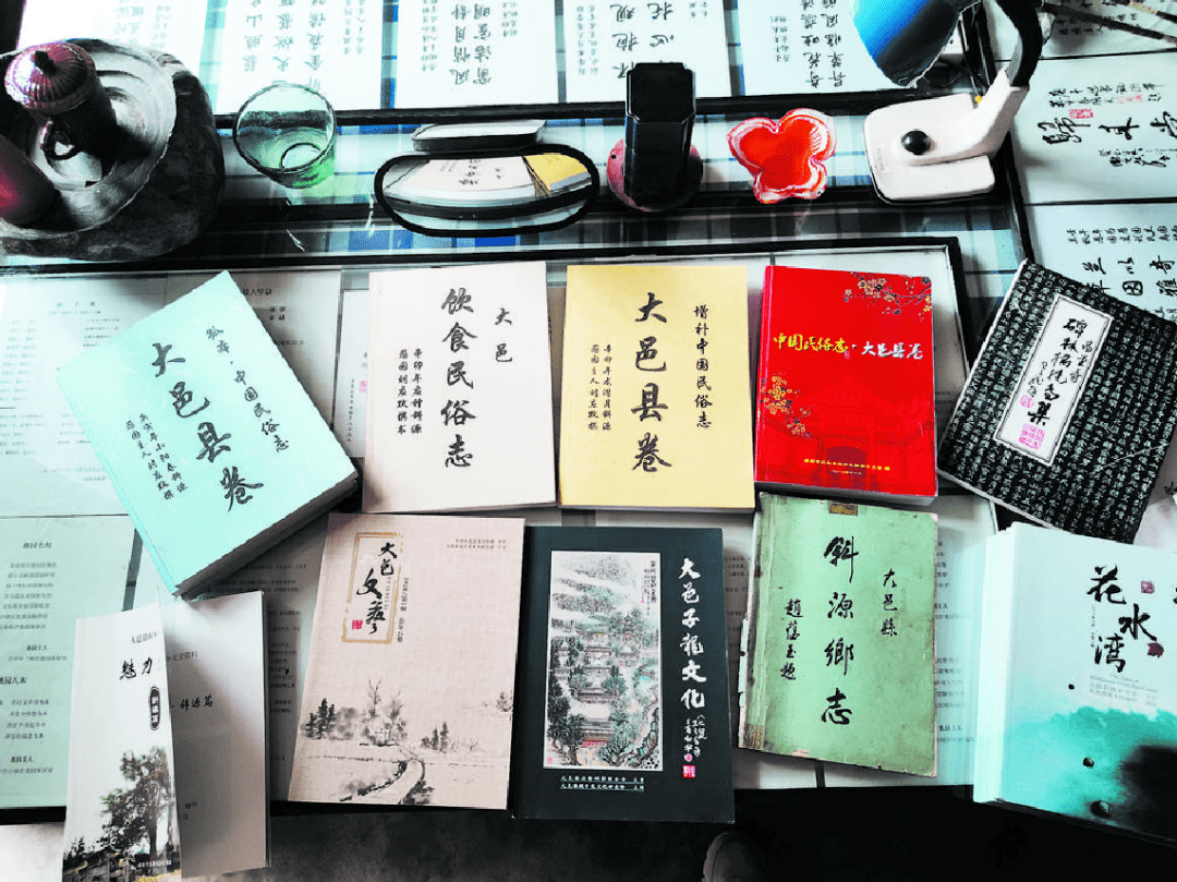 一本又一本厚厚的乡志、村志、饮食民俗志……这是刘应默几十年来坚持写作的成果。他不用电脑,不用智能手机,一笔一画,都靠一支钢笔。刘应默说,写书、写志,必须要“写”出来才足够地道、足够虔诚、足够原汁原味,才是“守文”的真谛。