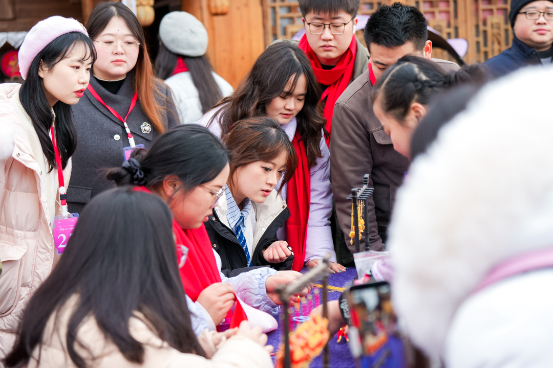 男女青年体验苗绣技艺。