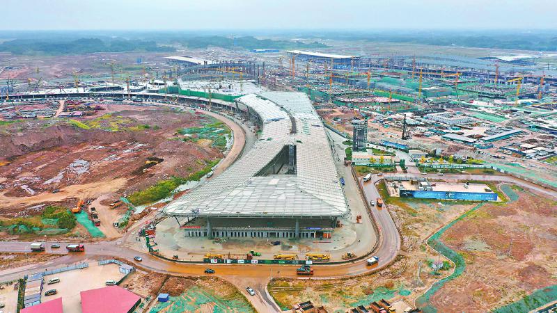 成都天府国际机场T2航站楼主体封顶 “太阳神鸟”振翅待飞