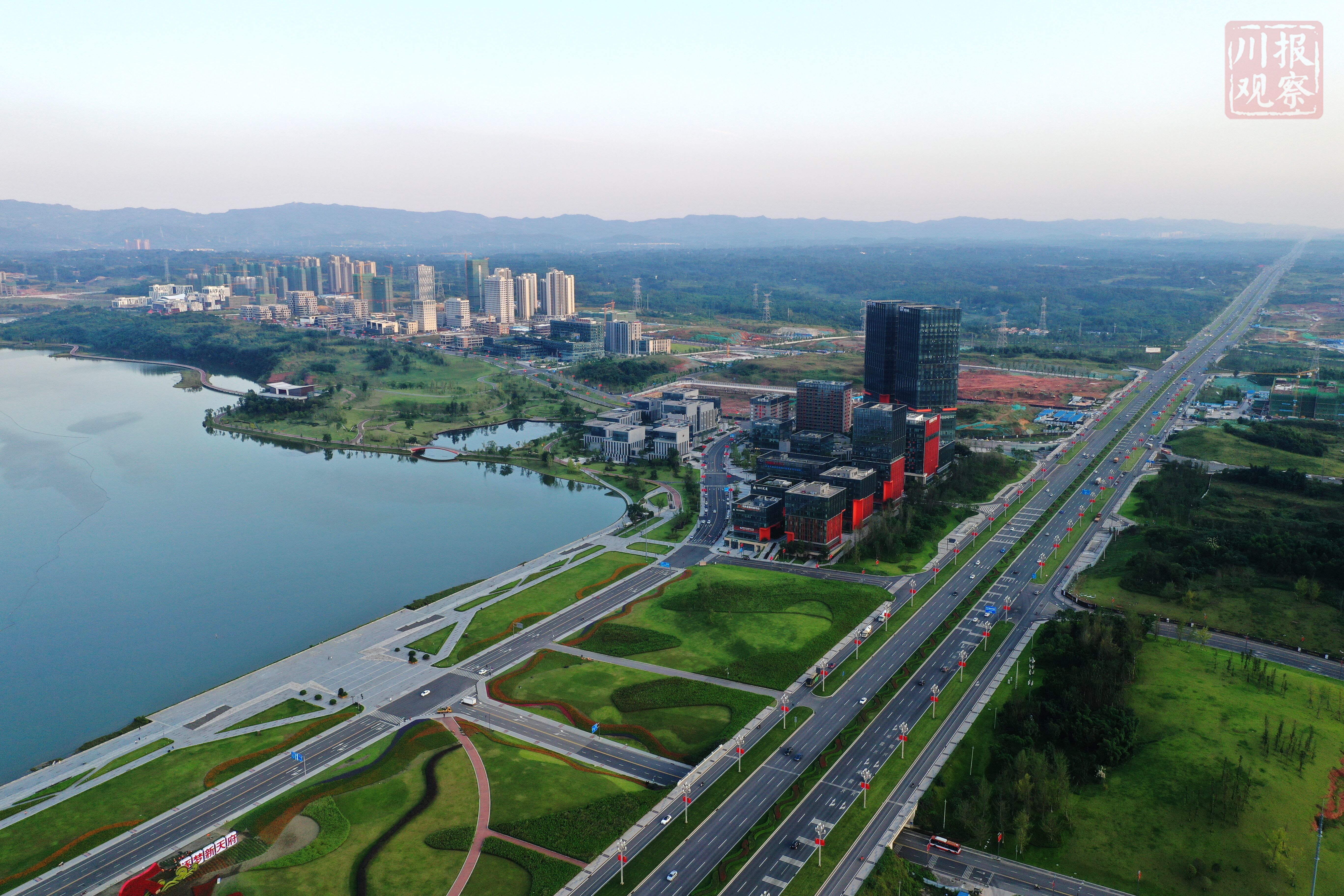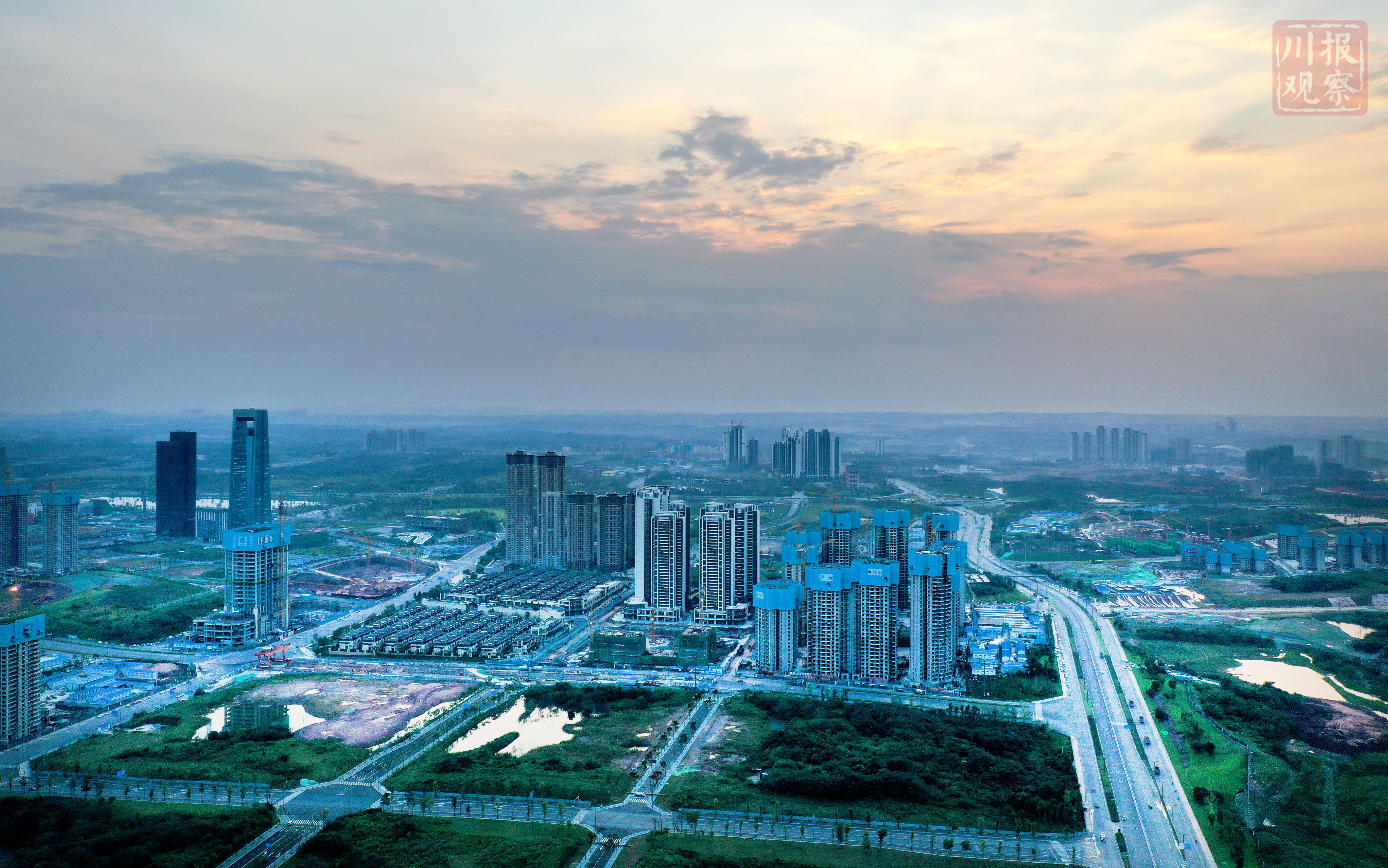 成都天府新区傍晚美如画 远处龙泉山肉眼可见(川报观察记者 李向雨)