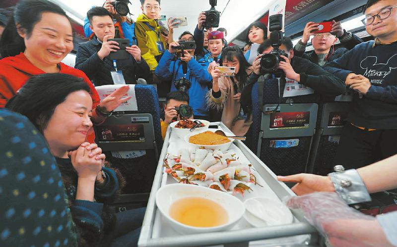成贵高铁首发车上提供的特色美食。