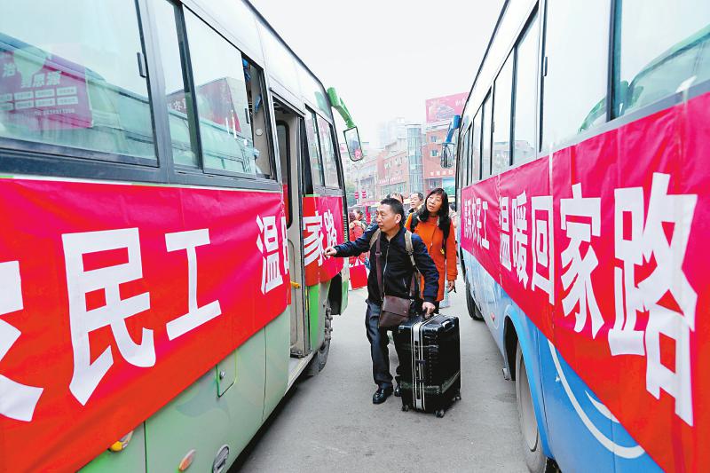 客运车辆增加还有一个原因:农民工“专列专车专项行动”。交通运输部门组织运输企业深入园区、厂区、大型企业、施工工地,摸排农民工需求,组织开行直达包车。