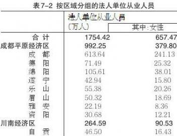按区域分组的法人单位从业人员情况详见表7-2。
