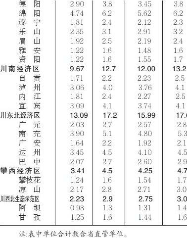 [1]成都平原经济区包括成都、德阳、绵阳、遂宁、乐山、眉山、雅安、资阳;川南经济区包括自贡、泸州、内江、宜宾;川东北经济区包括广元、南充、广安、达州、巴中;攀西经济区包括攀枝花、凉山;川西北生态示范区包括阿坝、甘孜。