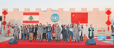 中国第十八批赴黎巴嫩维和部队春节联欢活动上,中国维和官兵和黎巴嫩当地民众合唱中文歌曲。