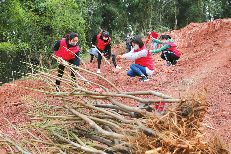3月11日,内江市东兴区田家镇正子村,志愿者在义务植树。 本报特约通讯员兰自涛摄(视觉四川)