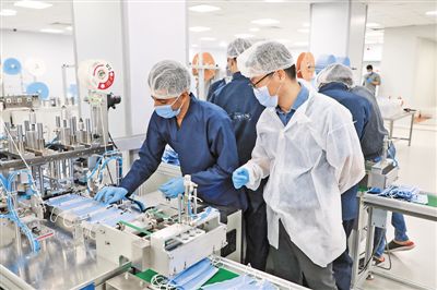 “依靠中国的先进自动化设备,加上中方对生产过程严格把关,我们生产的口罩品质在全埃及数一数二。”埃及欧药公司负责人欧麦尔·阿卜杜拿起一只刚刚生产出来的口罩自信地向记者展示。疫情暴发后,欧药公司与中国宁波嘉尚进出口有限公司,在开罗纳赛尔城保税区迅速建立起非灭菌医用外科口罩生产线,并于日前正式投产。