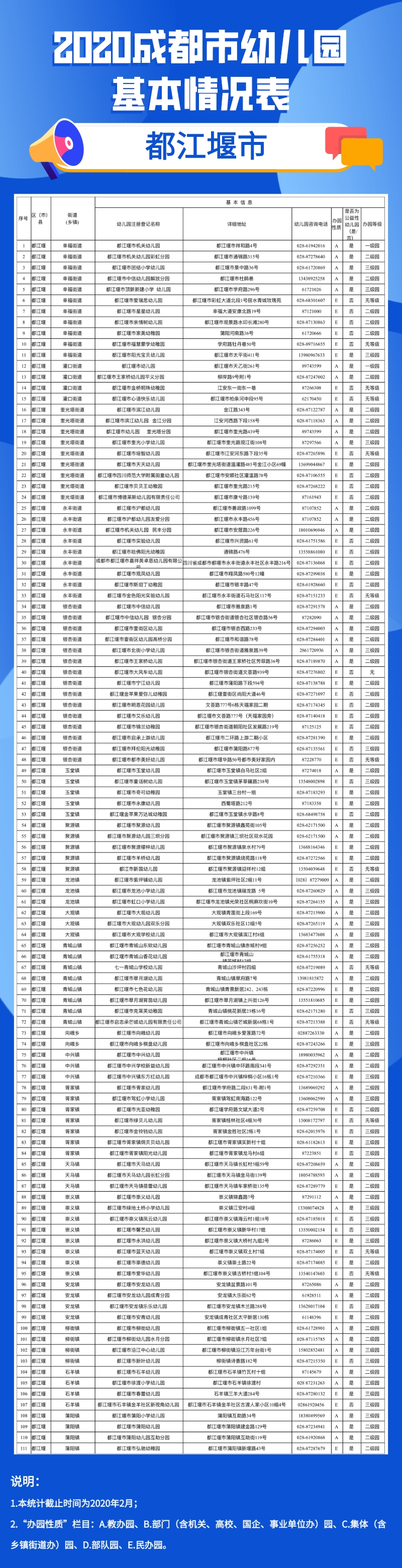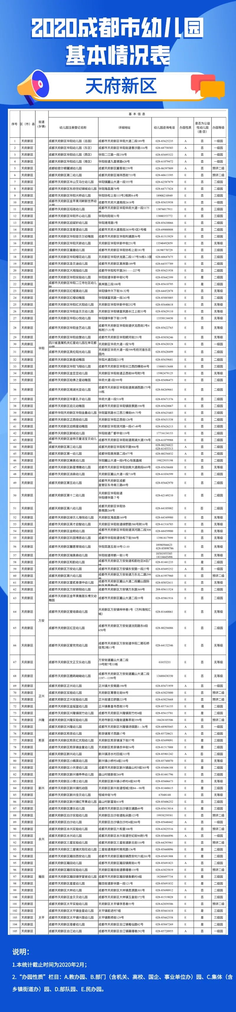 2020年成都市幼儿园地图来啦!(附地址电话等详细信息) 来源:四川在线 发布时间:2020-04-21 18:07:30 浏览次数: 次 【字体:小 大】 来源: 四川在线 终审:何晓波 分享到: 关闭本页 【打印正文】