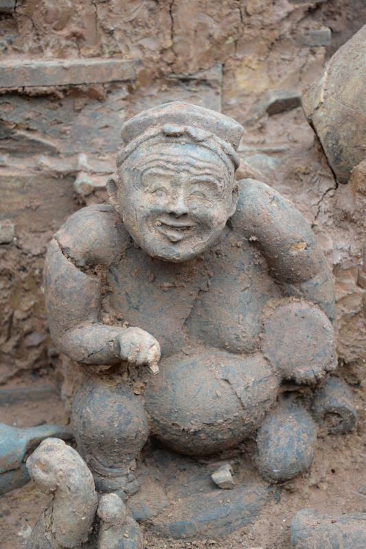 除此以外,这还是是近年来三国时期文物的重大发现。鎏金环首铜刀、造型滑稽说唱俑、仙山座、佛像摇钱树、彩绘持盾俑、彩绘陶楼等精美文物,具有较高的历史价值、艺术价值。