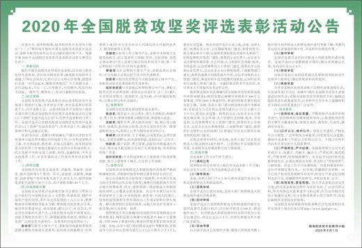 2020年全国脱贫攻坚奖评选表彰活动公告