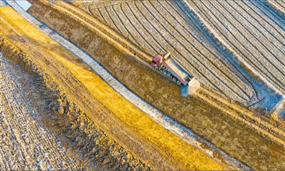 1月9日,安徽省合肥市肥东县古城镇,岱山湖灌区渠道清淤硬化施工正在进行。阮雪枫摄(影像中国)