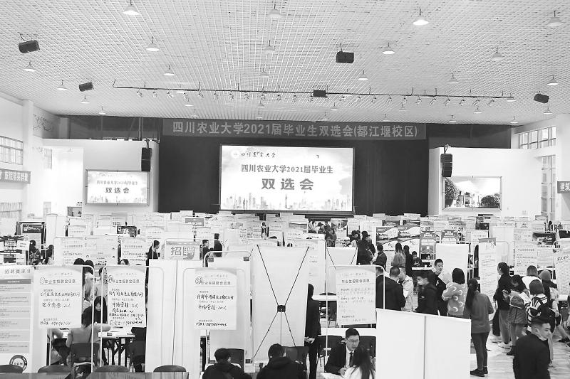 去年10月下旬,四川农业大学举行2021届毕业生双选会,为毕业生和用人单位搭建沟通平台。 (四川农业大学供图)