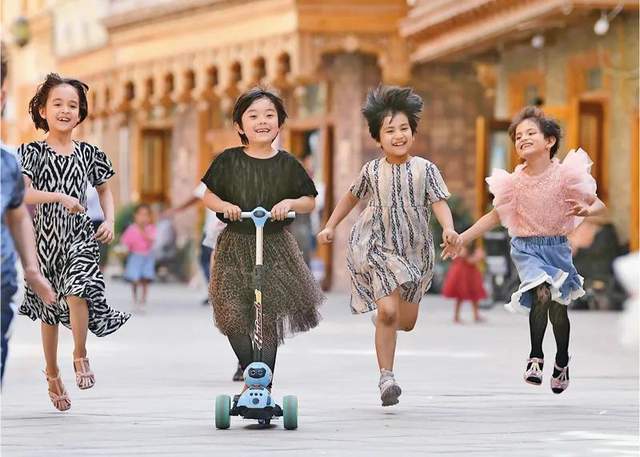 历经4年改造,新疆和田市团城的鸽子巷由曾经脏乱差的棚户区变身为古城新名片。图为孩子们在鸽子巷玩耍(2020年5月27日摄)。新华社记者 沙达提/摄