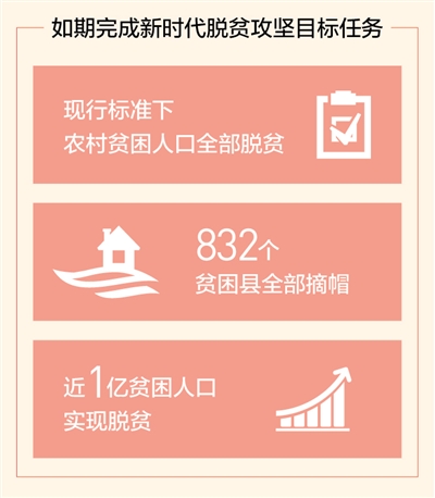 党的十八大以来,以习近平同志为核心的党中央团结带领全党全国各族人民,把脱贫攻坚摆在治国理政突出位置,组织实施了人类历史上规模最大、力度最强的脱贫攻坚战。习近平总书记指出,“我们要立下愚公移山志,咬定目标、苦干实干,坚决打赢脱贫攻坚战,确保到2020年所有贫困地区和贫困人口一道迈入全面小康社会。”“到2020年现行标准下的农村贫困人口全部脱贫,是党中央向全国人民作出的郑重承诺,必须如期实现,没有任何退路和弹性。”