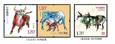 2021年2月12日,时序进入农历的辛丑年,即牛年,按惯例中国邮政于2021年1月5日发行《辛丑年》特种邮票,全套2枚。这是第四轮生肖邮票的第六套“牛票”。《辛丑年》特种邮票延续第四轮生肖邮票的“家国”理念:两枚邮票分别展示了国家的期许、家庭的企盼,组合而成浓浓的新春祝福。第一枚“奋发图强”,图案描绘了一头雄壮有力、一往无前的奔牛形象。公牛四蹄扬起,昂首向前,目光炯炯,表达出不畏艰险、砥砺前行,为实现中华民族伟大复兴而努力奋斗的寓意;第二枚“牛年大吉”,图案通过大牛与小牛舐犊情深的温馨画面,向全国人民传递家庭兴旺和谐、团圆美满的美好祝愿。设计者为我国著名画家姚钟华。这是姚先生1985年成功设计第一套生肖“牛票”——《乙丑年》特种邮票36年后再结“牛缘”。他采用装饰画技法,兼顾东西方绘画的特点绘就两枚邮票上3只各有特色的牛形象。