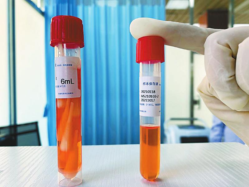 攀枝花市中心医院核酸检测采样点医护人员向记者展示单人单采试管和混采试管(左)。四川日报全媒体记者唐子晴摄
