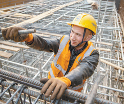 今年春节假期,中铁建工集团1000余名建设者坚守北京丰台站工作一线,冲刺丰台站主体结构封顶。图为工人正在施工。人民日报记者 张武军摄