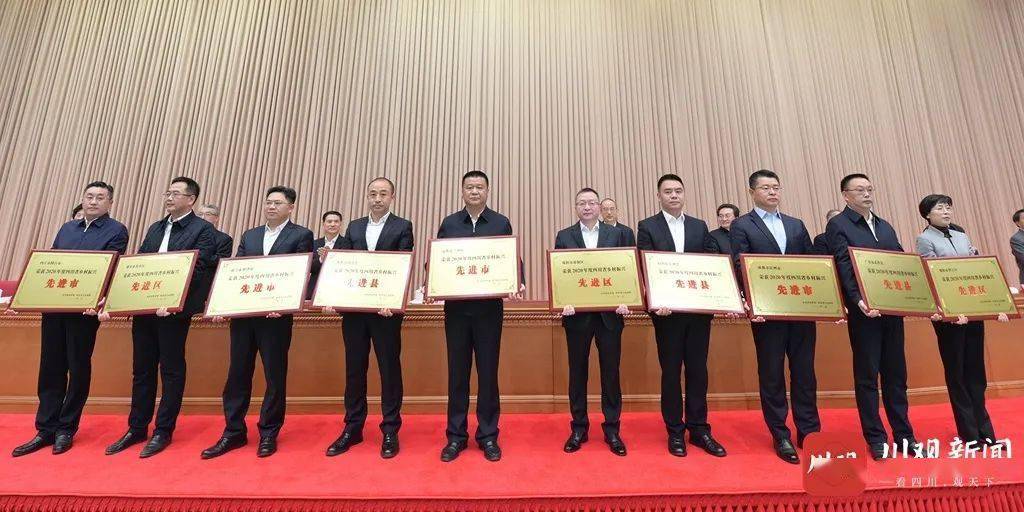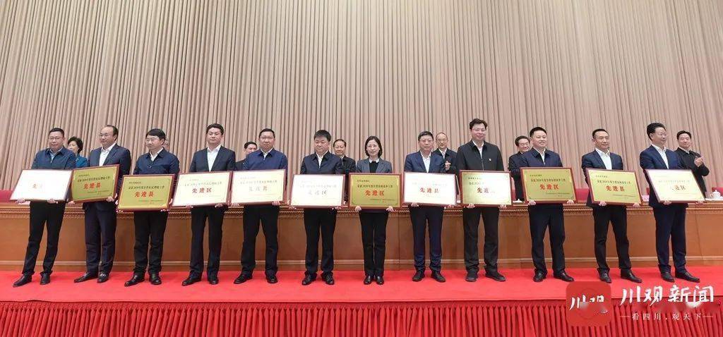 会议传达了中央农村工作会议精神,邓小刚宣读《 关于命名2020年度四川省乡村振兴先进县(市、区)、先进乡镇、示范村的决定》《 关于命名2020年度四川省星级现代农业园区的决定》《 关于表扬2020年度全省农村改革和农民增收工作先进县(市、区)的通报》。彭清华、黄强、柯尊平、邓小刚等向获得命名和表扬的先进代表授牌。