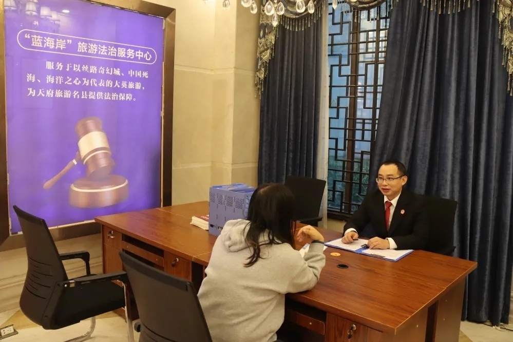 “旅游法治服务中心是针对服务旅游法治短板推出的举措,目标为司法保障旅游,率先积累经验。”大英县人民法院相关负责人说。