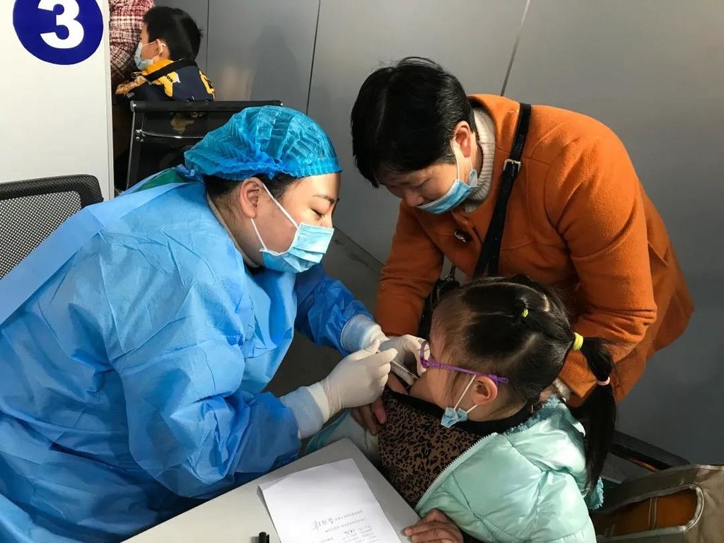 符合接种条件的家长带着孩子,来到登记区将提前准备好的身份证或户口簿复印件、知情同意书、疫苗接种证等材料交给工作人员。在工作人员核对信息无误并完成登记后,拿着接种单进入接种区进行接种。