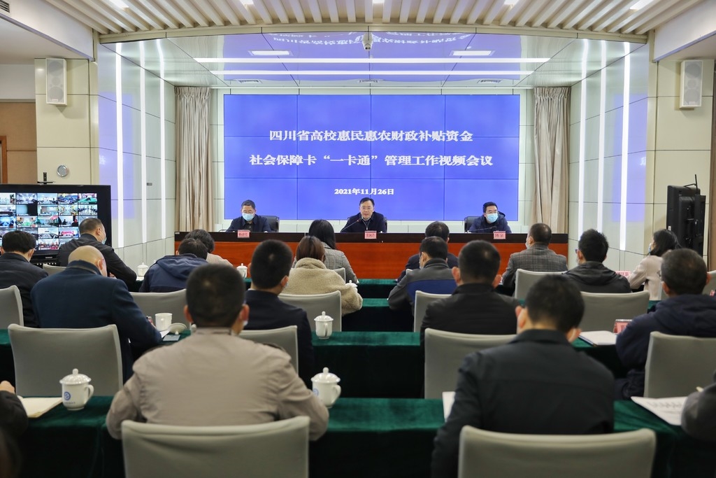 11月26日,四川省高校惠民惠农财政补贴资金社会保障卡“一卡通”管理有关工作视频会在成都召开。会议要求,以贯彻落实党的十九届六中全会精神为新起点,主动作为,扎实做好高校惠民惠农财政补贴资金社会保障卡“一卡通”管理有关工作,严把“资格关”“安全关”“时间关”,确保受助人资格准确无误、资金安全,及时发放到位,增强受助学生的获得感、幸福感。