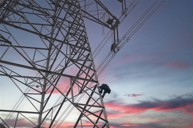 泸州东500千伏工程投运现场,国网四川电力高空作业人员登塔验收 (廖望 摄)