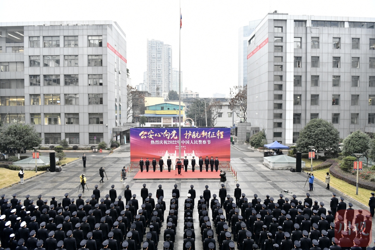 为庆祝第二个中国人民警察节,1月10日上午,四川省公安厅在厅机关举行“公安心向党、护航新征程”2022年中国人民警察节庆祝活动。