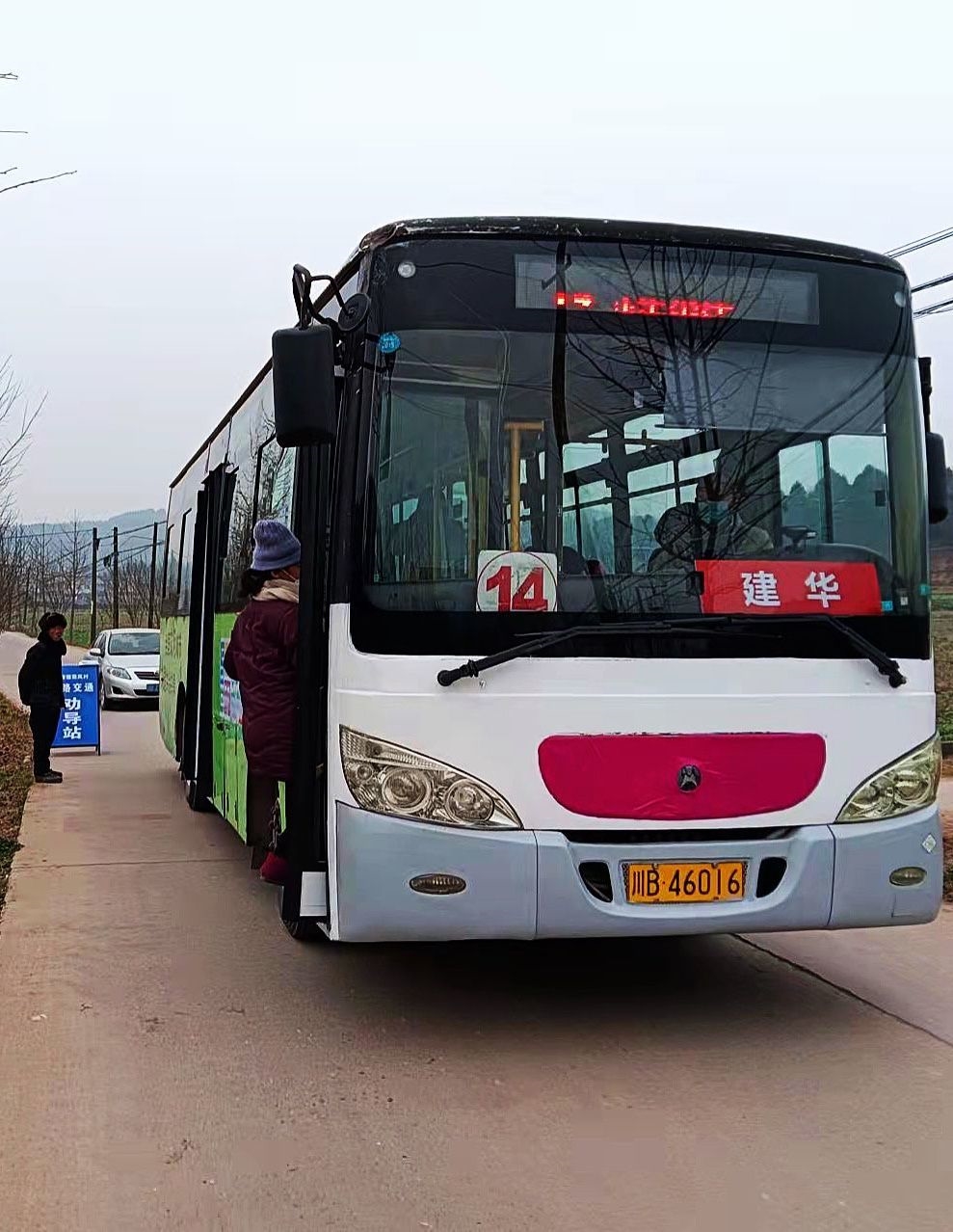 2022年1月1日,游仙区小枧镇的洪垭村已经有了些许年味儿。村民宋代宽准备到场镇上选一部新手机作为送给妻子的新年礼物,一大早便与几个进城办事的村民一道,从村口的站台登上了14路公交车。随着汽车启动,稳稳驶向城区,宋代宽的脸上洋溢着满满幸福感。