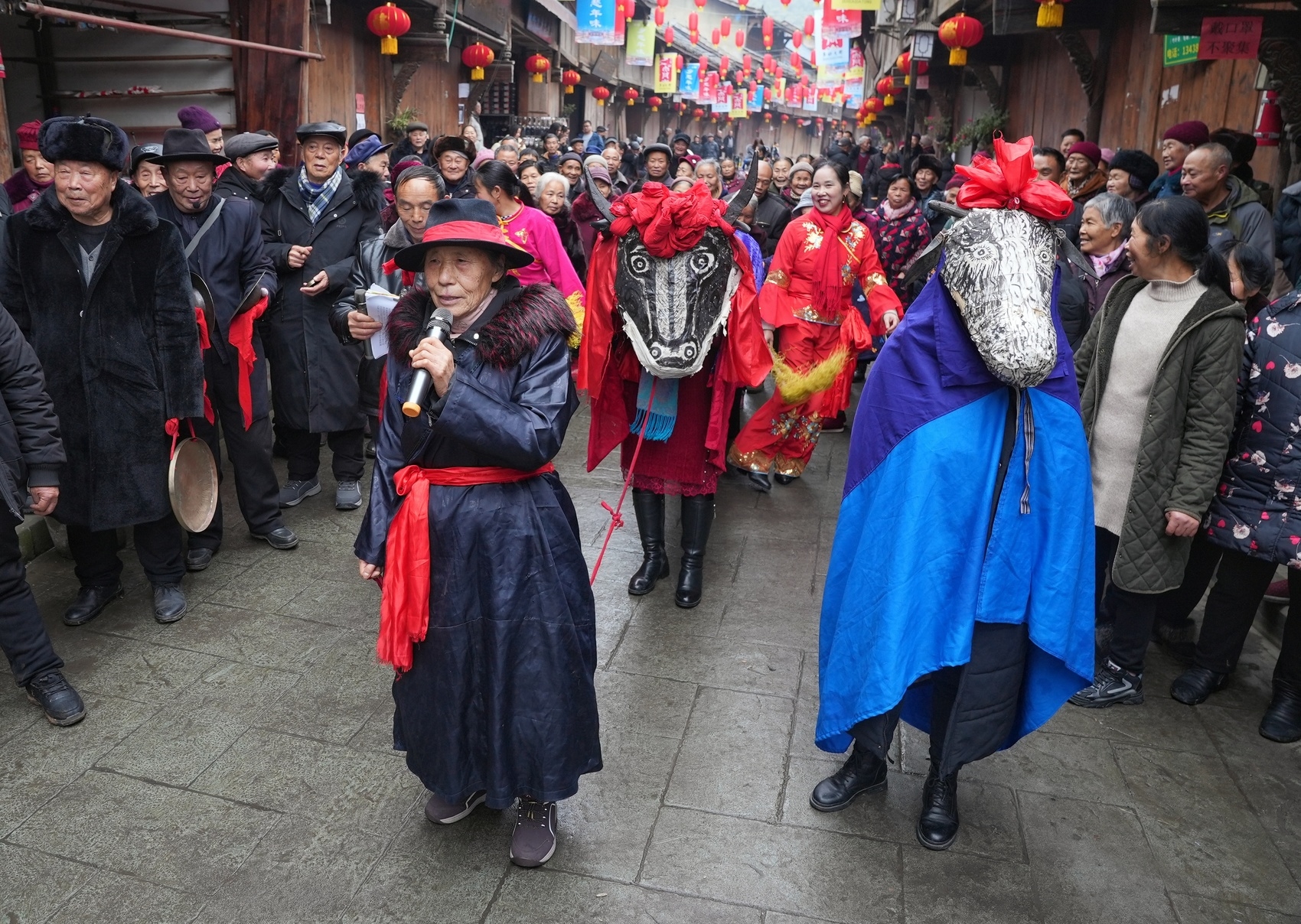 穿梭于老街中的“牛儿灯”表演队伍