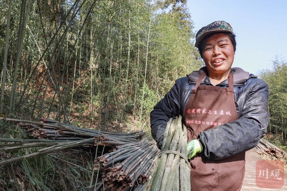 收获竹笋,方竹也日渐长成。陶用湖说,一吨方竹的竹竿可卖800元,在成都家居建材市场供不应求。