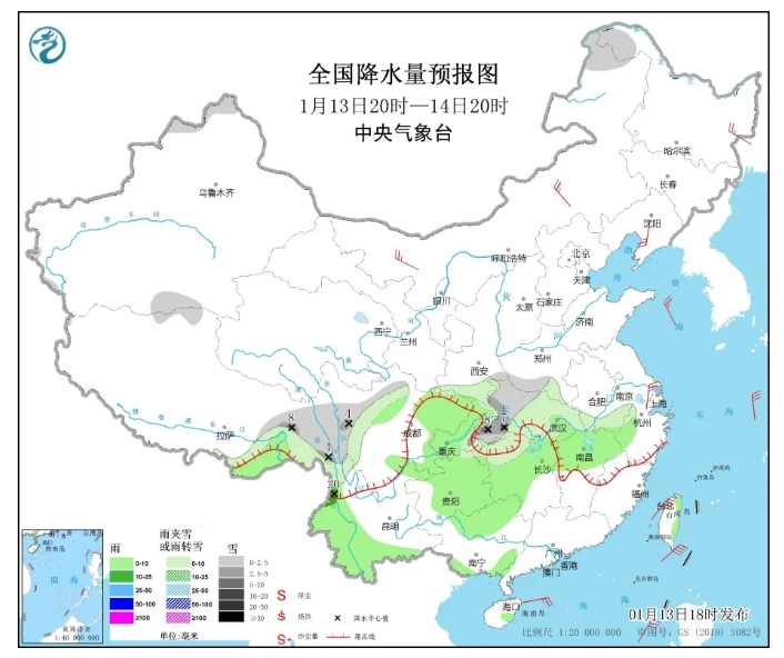 中央气象台预计,13日20时至14日20时,内蒙古、黑龙江、西藏、河南、湖北、川西高原等地部分地区有小到中雪或雨夹雪,其中西藏东南部、湖北西南部等地局地有大雪。