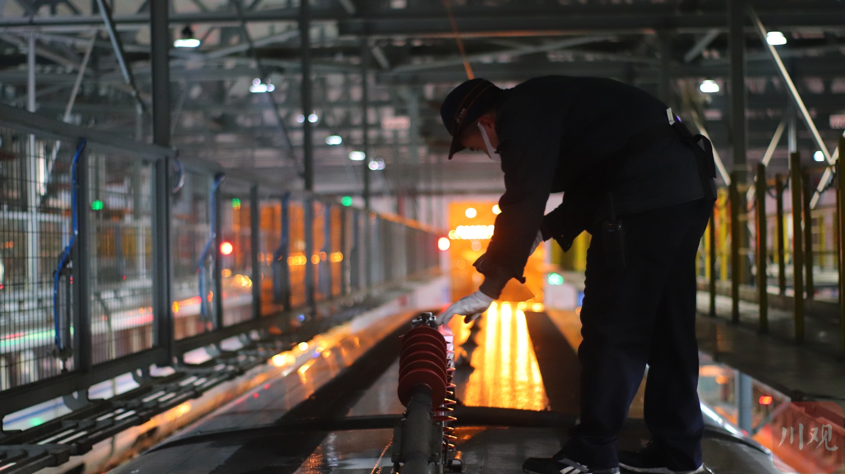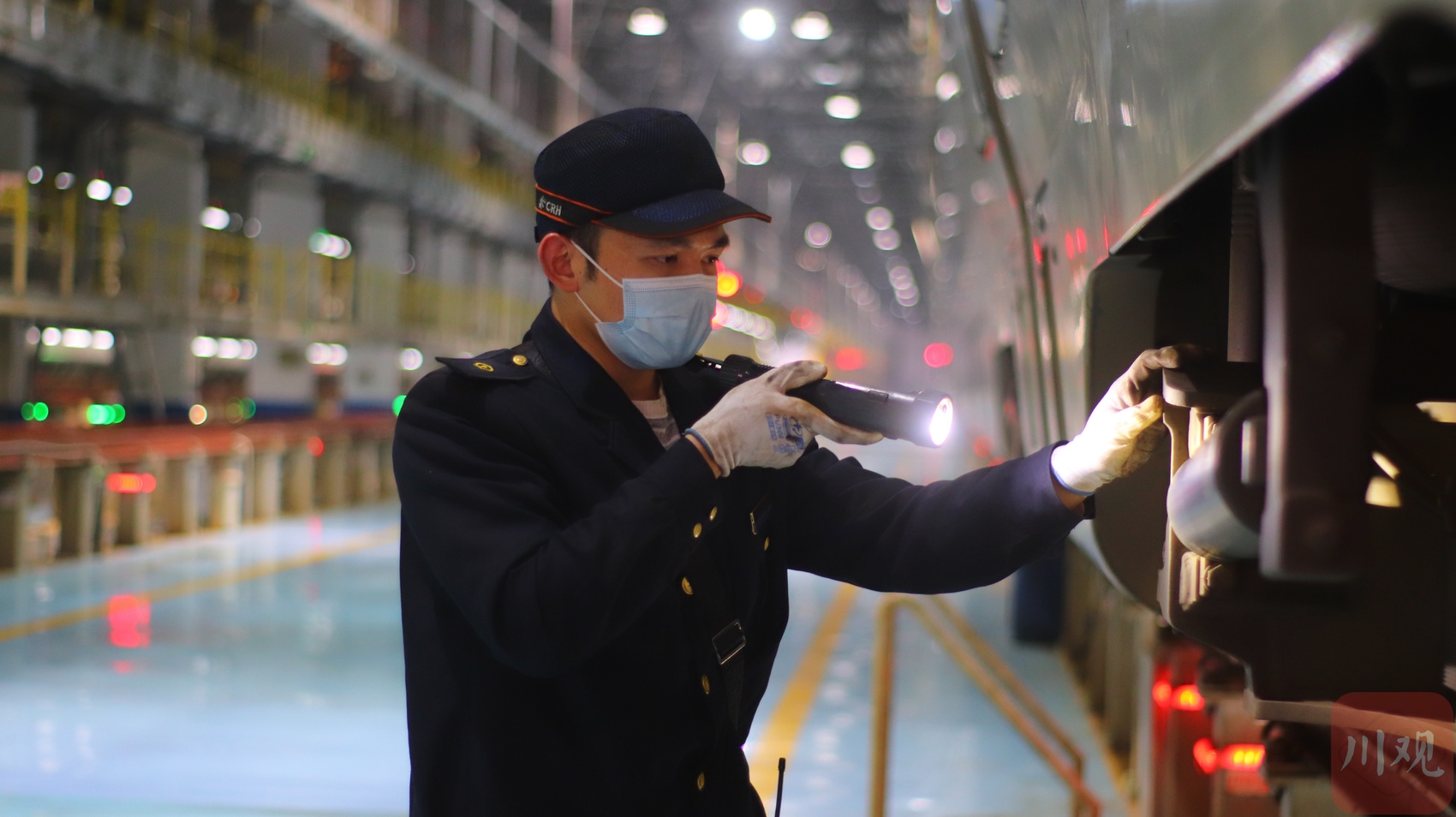 1月17日春运首日,凌晨时分,中国铁路成都局集团公司成都动车段动车组检修库依旧灯火通明,地勤机械师们正奔走在检修库内为即将上线的动车组进行全面“体检”,重点对动车组头灯、雨刮器、走行部、高压牵引设备等行车关键设备开展检查,对动车组防寒加热设备状态做好确认,保障动车组在冬季严寒天气下的运行安全和旅客乘坐舒适性。