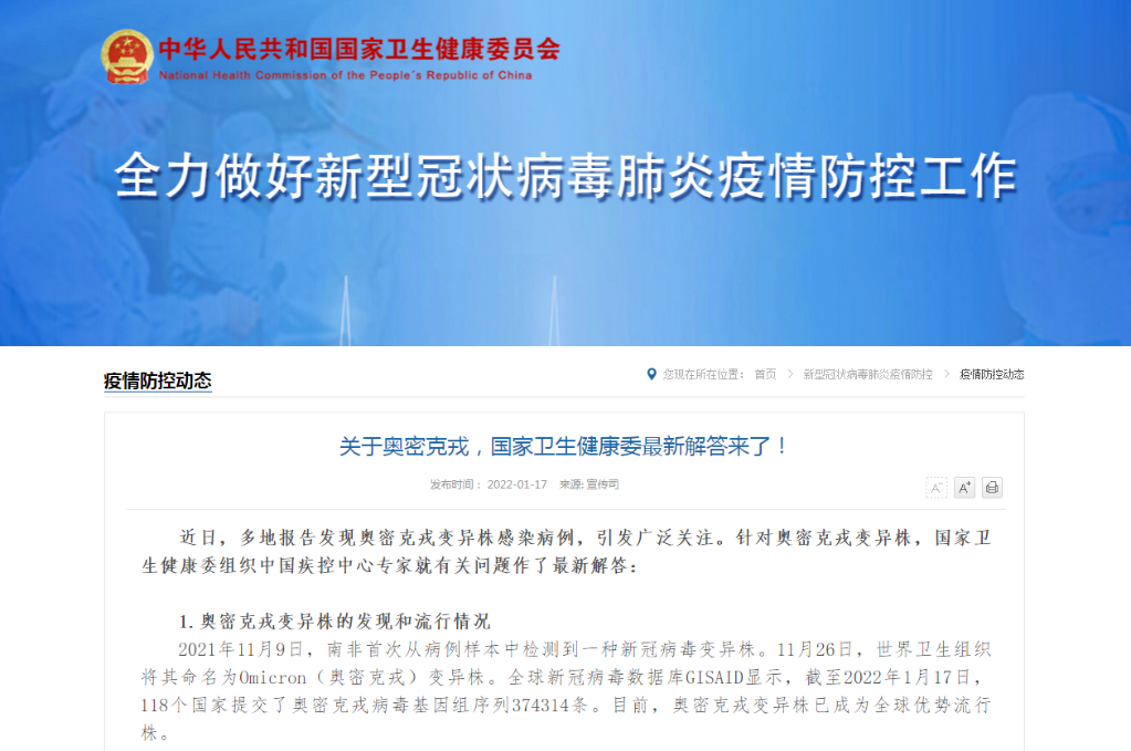 2022防疫关切事丨奥密克戎已成全球优势流行株 国家卫健委最新解答来了!
