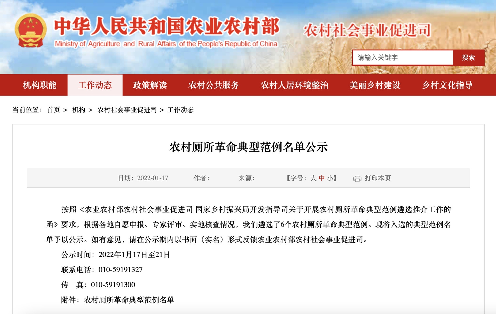 1月18日,记者从农业农村部网站获悉,日前,农业农村部公示了农村厕所革命典型范例名单,根据各地自愿申报、专家评审、实地核查情况,全国共遴选了6个农村厕所革命典型范例,乐山市井研县入选。