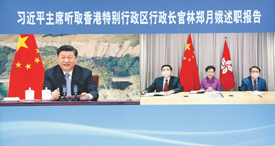 1月27日,国家主席习近平在北京以视频连线方式听取了香港特别行政区行政长官林郑月娥2020年度的述职报告。新华社记者 刘 彬摄