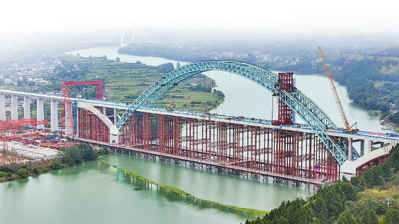 同日 成渝中线高铁控制性工程、世界最大跨度无推力组合拱桥——沱江特大桥主梁顺利合龙,实现全桥合龙。成渝中线高铁预计在2027年底建成通车,届时从成都至重庆将实现50分钟通达。