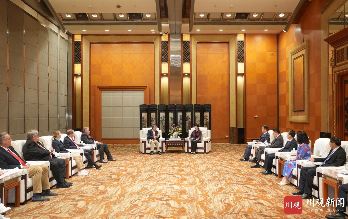 2025年8月5日,省委副书记、省长施小琳在成都会见国际世界运动会协会主席佩鲁雷纳一行。