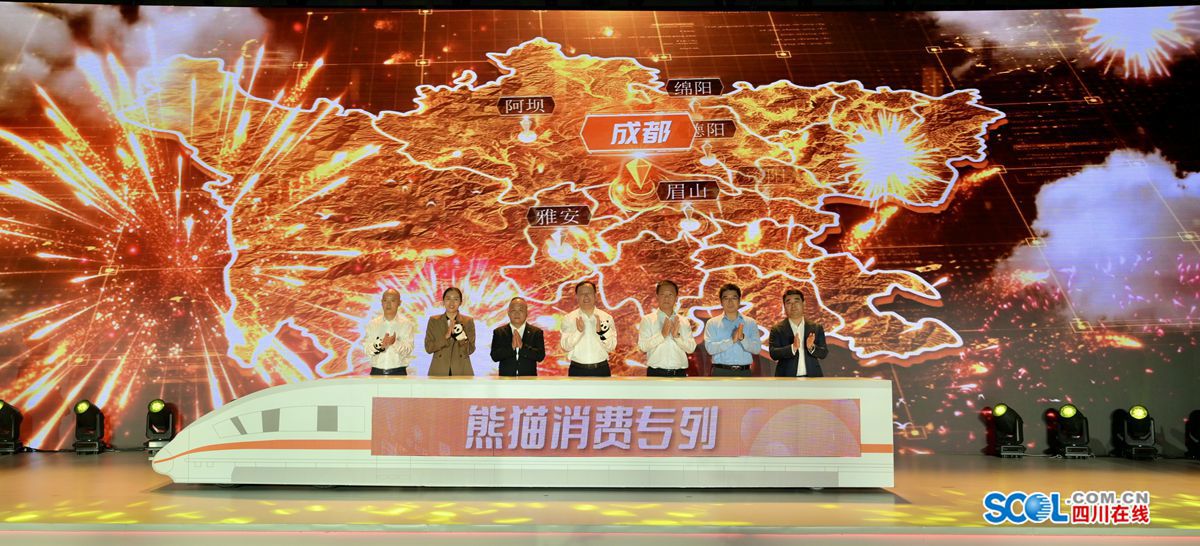 活动现场,发布了40个2025年“蜀里安逸”消费新场景、2025川渝20个不夜地标和20个夜经济新业态示范案例,启动发放了包括餐饮、川酒川茶、“锦绣天府”入川游、“最美川西景观道”自驾消费等消费券在内的“蜀里安逸”消费大礼包;随后,7名重点消费服务领域经营主体代表登台,共同为“熊猫消费专列”启程,标志着“购在中国·四川站”暨第四届中国(四川)国际熊猫消费节正式启动。