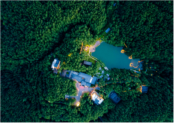 夜幕降临,整个山静了下来,绕天马湖散步,三两声蛙鸣,打破了夜的寂寞,半湖睡莲,托起一缕缕淡淡的轻烟,一轮明月,映照出松的挺拔,人的潇洒,还有那密林难掩的休闲书吧的灯光,诗和远方在此相遇,自然天成。